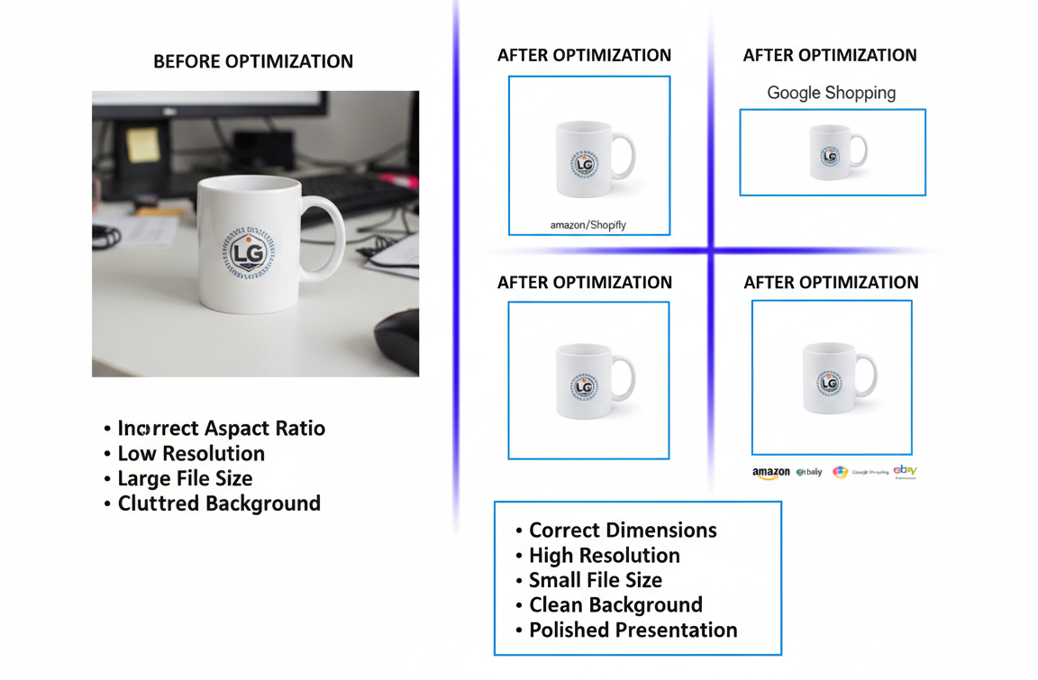 • Meet marketplace guidelines (Amazon, eBay, Shopify, Google Shopping, etc.)